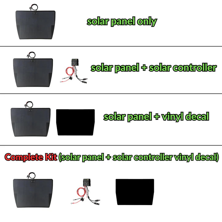 6. ملصق الفينيل الاختياري المخصص. يوصى بشدة بوضع ملصق الفينيل بين اللوحة الشمسية وغطاء المحرك. فهو يحمي طلاء السيارة من التلف.