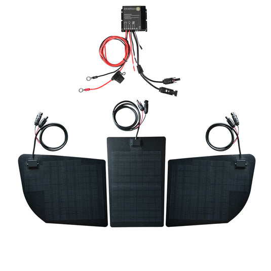 7. Easy to install plug-and-play wiring. The optional Plug-and-play 10A Waterproof MPPT solar controller. It comes pre-wired with fuses, terminals, and connectors. It features advanced MPPT control with intelligent protection against risks like reverse polarity and overcharging. Compatible with Sealed, AGM, Gel, Liquid, and Lithium-ion batteries.